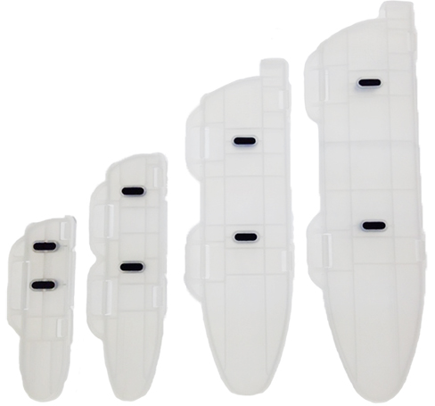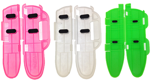 The KnifeSafe features a hinged design which virtually eliminates "cut though" common on unhinged protectors. It's opening design and polypropylene makeup makes sanitizing in the dishwasher a breeze. The four rubber bumpers contact the blade and double clasps hold tightly, greatly reducing the chance of slipping off.